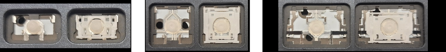 - Στα περισσότερα πληκτρολόγια που φαίνονται πανομοιότυπα εξωτερικά, χρησιμοποιήθηκαν διαφορετικοί τύποι στηριγμάτων κάτω από τα πλήκτρα.