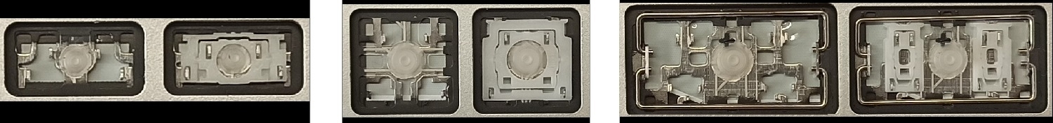 - Στα περισσότερα πληκτρολόγια που φαίνονται πανομοιότυπα εξωτερικά, χρησιμοποιήθηκαν διαφορετικοί τύποι στηριγμάτων κάτω από τα πλήκτρα.